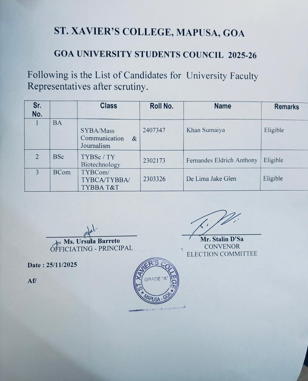 Goa University Students Council Elections 2025-26 NEW