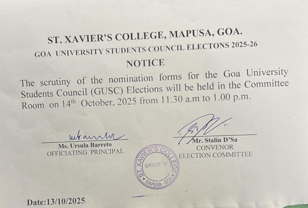 Notice – Goa University Students Council Elections NEW College Notices Notices Notifications October 13, 2025 trygywr1963 Notice - Goa University Students Council Elections